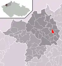 Se encuentra ubicada al noroeste de la región, en la ladera sur de los montes Metálicos, cerca del río Ohře —un afluente izquierdo del río Elba—, de la región de Karlovy Vary y del estado alemán de Sajonia.[1]