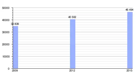Gráfica de evolución demográfica de Petit Bois entre 2009 y 2015 |