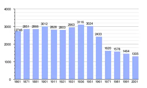 Gráfica de evolución demográfica de Petrella Tifernina entre 1861 y 2001 |