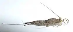Los individuos pueden llegar a medir 15 mm y tienen un color grisáceo, con dos largas y estrechas antenas su cuerpo termina en una cola que es igual de larga que el resto de su cuerpo.[3]