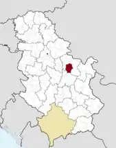 Se ubica en el cruce de las carreteras 147, 161 y 162, unos 25 km al sureste de Požarevac.[4]