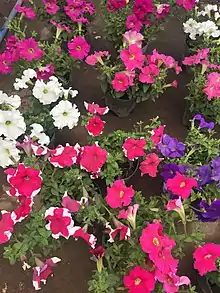 El género Petunia, llamado comúnmente también petunia, comprende 23 especies[1] pertenecientes a la familia de las Solanáceas nativas de Sudamérica. La mayoría de las variedades cultivadas son híbridos de Petunia × hybrida, llamada también P. atkinsiana