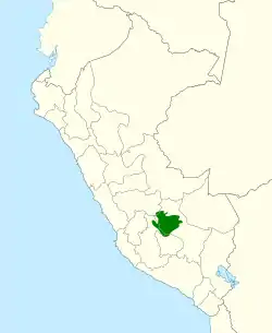 Se encuentra únicamente en las montañas del sur de Perú. Su hábitat natural son los bosques húmedos tropicales de montaña.
