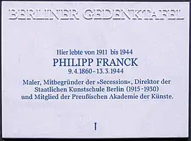 En 1944, a la edad de 83 años, Philipp Franck murió en Berlín. Su tumba está dedicada por la ciudad de Berlín como tumba de honor desde 2001. Fue padre del químico Hans Heinrich Franck y del arquitecto Carl Ludwig Franck, abuelo de la escultora Ingeborg Hunzinger y tatarabuelo de la escritora Julia Franck.