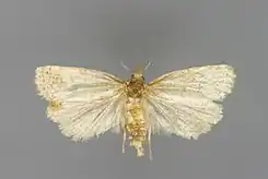 Alas anteriores de color ocre claro, más o menos salpicado o estrigulado de marrón, a veces teñido de rojizo; a veces dos puntos más oscuros en el disco más allá del medio. Fuscous pálido de las alas traseras. La larva ocre-blanquecina; cabeza y plato de 2 marrones.[4] |