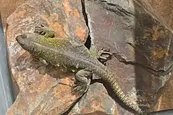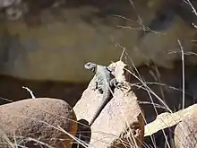 ![]() Ejemplar de Phymaturus mallimaccii asoleándose en una roca |