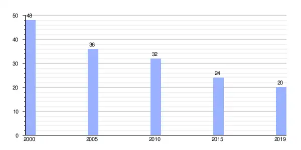 Gráfica de evolución demográfica de Piñeira entre 2000 y 2019 |