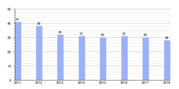 Gráfica de evolución demográfica de Piñeiro de Abaixo entre 2011 y 2018 |