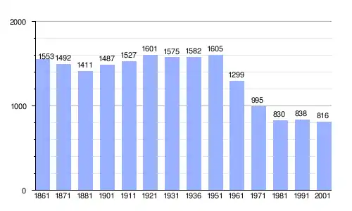 Gráfica de evolución demográfica de Piana Crixia entre 1861 y 2001 |