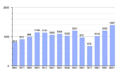 Gráfica de evolución demográfica de Piane Crati entre 1861 y 2001 |