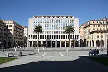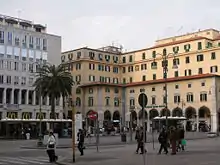 Mientras tanto, los pórticos del siglo XVII de la plaza originaria fueron demolidos en gran parte (incluido el del Palazzo Granducale, reconstruido en una posición más atrasada) para dejar espacio a nuevos edificios; en el lado derecho de la Catedral se construyó la nueva sede de la Cassa di Risparmi di Livorno, proyectada también por Vagnetti, según un modelo derivado de los edificios renacentistas, mientras que Ghino Venturi, que había tenido fortuna en la Livorno de la época fascista, fue protagonista de la reconstrucción de las nuevas oficinas municipales y del Palazzo della Provincia.