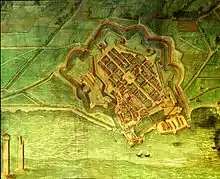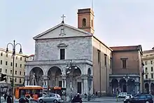 Sin embargo, en torno al 1594 se iniciaron los primeros estudios para la realización de una plaza de armas, que sería la actual Piazza Grande, en el exacto centro de la ciudad, con la construcción en este espacio de una gran iglesia (que posteriormente se convirtió en la Catedral de la ciudad). El propio Buontalenti realizó un primer diseño para la nueva iglesia, cuyos cimientos fueron edificados entre abril y mayo del mismo año. Tras el abandono de este primer proyecto, la iglesia fue modificada y completada en torno al 1602 por Alessandro Pieroni.