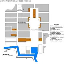 - Delante del Palazzo Comunale y el Palazzo della Dogana, donde antiguamente había un pequeño plaza, la plaza recibía nombre distintos.