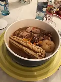 Ingredientes | carnes variadas, choclo, vino, pimienta blanca, hojas de laurel. | |