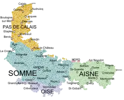 La provincia de Picardía, bajo la autoridad de un gobernador, unió los siguientes territorios: Calaisis o Pays de Reconquis, Boulonnais, Pays de Montreuil, Marquenterre, Ponthieu, Vimeu, Amiénois, Santerre, Vermandois, Thiérache, Noyonnais, etc. Esta unidad territorial tomó forma con la reunión en la corona de Francia de la herencia de Borgoña en 1477 a la muerte de Carlos el Temerario, último duque de Borgoña. A este territorio, en el siglo XVI, Calais y sus alrededores reconquistados estaban vinculados a Inglaterra.