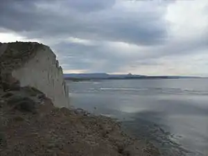 ![]() Vista desde la Ruta provincial 1 del Pico Salamanca con el cerro Sombrero al costado derecho | ||