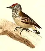 ![]() Ejemplar macho de carpinterito albiescamoso (Picumnus albosquamatus) en Bonito, estado de Mato Grosso do Sul, Brasil. | ||