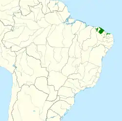 Se distribuye por las tierras bajas del noreste de Brasil (Ceará, Río Grande del Norte y Paraíba).[3][4]