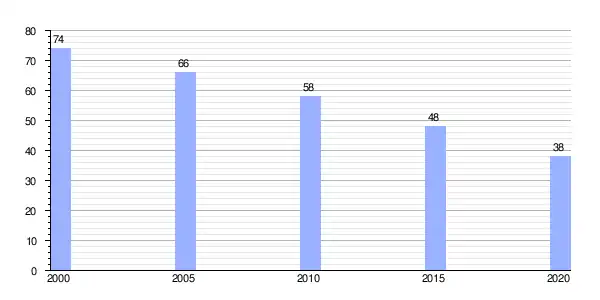 Gráfica de evolución demográfica de Pidre (aldea) entre 2000 y 2020 |