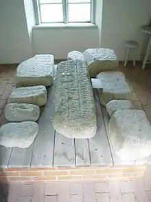 La piedra estaba flanqueado por muchas otras piedras con inscripciones conmemorando elecciones de reyes anteriores. Sin embargo, las piedras fueron destruidas 1515 durante la guerra civil contra los daneses. Se dice que Gustavo Vasa y Juan III trataron de reconstruir las Piedras de Mora sin éxito.[cita requerida] Uno de los fragmentos es conocido como la piedra de las Tres Coronas ya que es el ejemplo más temprano del uso del símbolo nacional sueco.