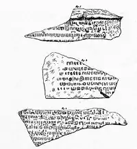 James Prinsep (1799–1840), un estudioso anglo-indio y anticuario quien inició el Journal of the Asiatic Society of Bengal, publicó en el Journal en 1837 un escrito del Dr. William Bland del HMS Wolf, quien dijo que había hecho un facsímil de lo que era posible ver en la piedra de arenisca roja: aproximadamente 50 líneas incompletas.[5]