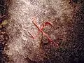 , y representa el primer uso de esta runa para una m en Dinamarca[1] El texto está formado en dos líneas de diferente tamaño. Se ha sugerido que puede haber imitado o recibido influencia de los manuscritos merovingios o carolingios, que muestra una primera línea de caracteres delgados y largos y siguientes líneas más cortas y troceadas.