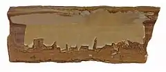 La piedra paesina, también llamada mármol ruiniforme o caliza ruiniforme, es un tipo de piedra caliza natural con componente arcilloso, que se caracteriza por estar infiltrada por materiales ferruginosos a través de hendiduras, lo que le confiere un aspecto irregular característico, similar a los anillos de Liesegang, de tal forma que cuando se corta la piedra en placas planas, imita un paisaje o una ciudad o edificio en ruinas. Se obtiene de canteras situadas en la región de la Toscana en Italia y se emplea fundamentalmente como ornamental, para decoración de muebles, objetos de escritorio o fondo de pinturas.[1]