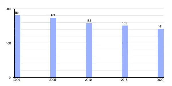 Gráfica de evolución demográfica de Pedrafita entre 2000 y 2020 |