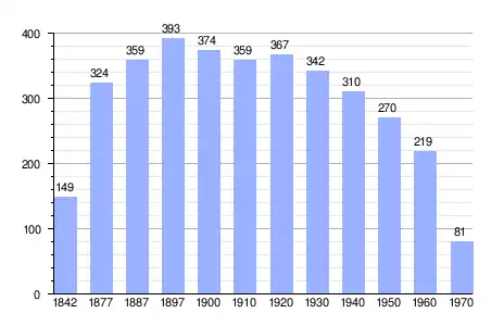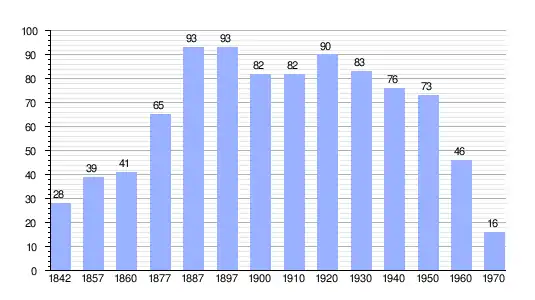Población de derecho (1842-1970) según los censos de población del INE.[5] |