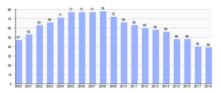 Gráfica de la evolución de Piedrafita de Jaca entre 2000 Y 2018 |