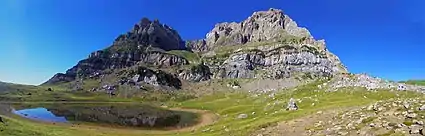 Ibón es el término que se usa en Aragón para referirse a los pequeños lagos de alta montaña que se encuentran a lo largo de los Pirineos por encima de los 1.500 metros de altura. Su origen está asociado a la erosión glaciar, que al retirarse los hielos dejó zonas más profundas que fueron inundadas. En la localidad de Piedrafita de Jaca, a los pies de Peña Telera, se encuentra el Ibón de Piedrafita, uno de los más accesible de todo el Pirineo, al que se puede llegar e. apenas una hora y media desde la localidad, en un itinerario apto para todos los públicos. En las cercanías del ibón se encuentra el, ya nombrado anteriormente, Arco de Piedrafita, una curiosa y atractiva formación geológica.
