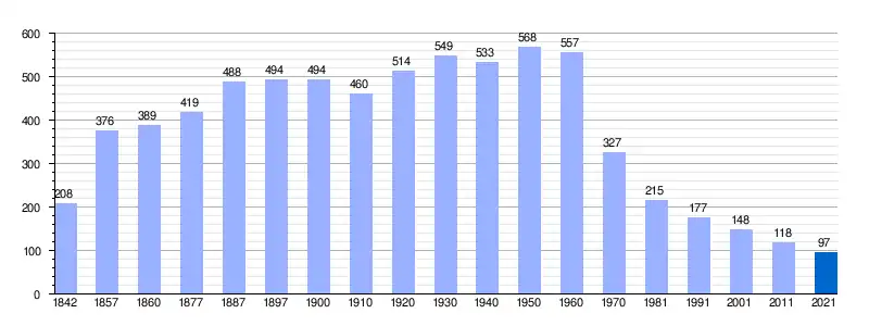 Población de derecho (1842-1991, excepto 1857 y 1860 que es población de hecho) o población residente (2001-2011) según los Censos de Población desde 1842.      Población según el padrón municipal de 2021 del INE.