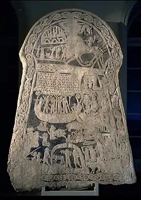 La más grande y famosa de las piedras es la bautizada como piedra VIII, fechada en el siglo VIII[1] o el siglo IX, mostrando escenas de la Mitología nórdica, en particular del Völundarkviða, Thor pescando a Jörmungandr, el castigo de Loki por la muerte de Baldr,[2] y Odin cabalgando al Valhalla sobre el lomo de Sleipnir. Otras imágenes de la piedra, como la mujer en pie con dos espadas, no se identifica con ningún mito nórdico que haya sobrevivido hasta nuestros días.