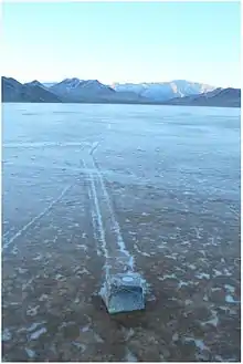 - Stanley, G. M., 1955, Origin of playa stone tracks, Racetrack Playa, Inyo County, California. Geological Society of America Bulletin, v. 66, p. 1329-1350.