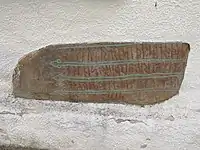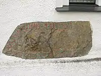 La inscripción está fechada a finales del siglo X, y muestra una temprana runa-k punteada que representa el fonema-g en aigi.[3]
