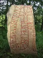 Piedra rúnica de estilo RAK hecha en memoria de un hombre que comandaba un asentamiento.