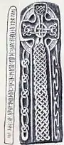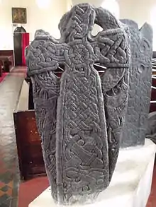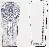 Este fragmento de una cruz se encuentra en la iglesia de Kirk Michael. La inscripción es de tipo futhark joven de rama corta y se grabó entre los años 930 y 950 d. C.