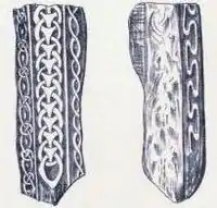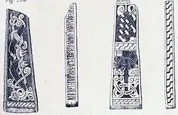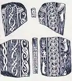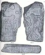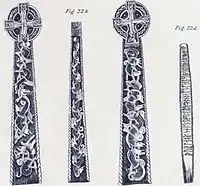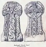 Son fragmentos de una cruz encontrada en Balleigh, fechadas en la época vikinga. Solo hay vestigios de las runas y no se pueden descifrar.