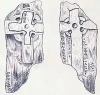 - <iualfir>, sonr Þórulfs hins Rauða, reisti kross þenna ept Fríðu, móður sína.