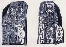 pero hay también una piedra levantada para beneficio del artífice que creó estas piedras. Consecuentemente, las piedras rúnicas de la Isla de Man son similares a las erigidas en territorios escandinavos[1] pero a diferencia de, por ejemplo, las noruegas que las llaman piedras en las inscripciones, incluso si son en forma de cruz, las piedras rúnicas levantadas en las islas británicas aparecen con la inscripción cruces[2]