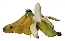 Cuando se pellizca la punta de un banana con dos dedos, se partirá y la cáscara se desprenderá en dos secciones limpias. Las fibras internas, o «hilos», entre la fruta y la cáscara permanecerán adheridas a la cáscara y el tallo de la banana se puede utilizar como mango al comer el plátano.