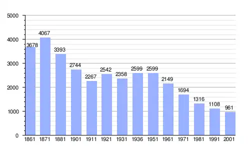 Gráfica de evolución demográfica de Pietrabbondante entre 1861 y 2001 |