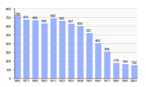 Gráfica de evolución demográfica de Pietraferrazzana entre 1861 y 2001 |