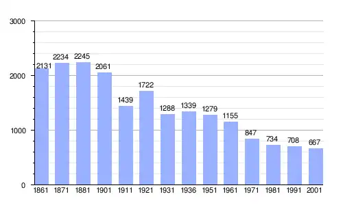 Gráfica de evolución demográfica de Pietraroja entre 1861 y 2001 |