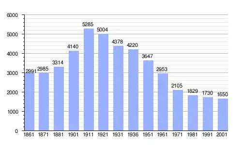 Gráfica de evolución demográfica de Pietrastornina entre 1861 y 2001 |