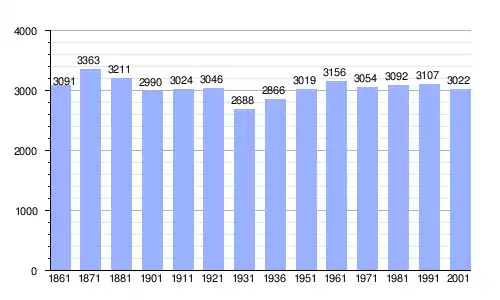 Gráfica de evolución demográfica de Pietravairano entre 1861 y 2001 |