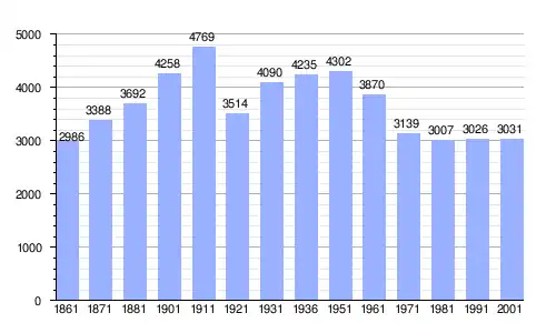 Gráfica de evolución demográfica de Pietrelcina entre 1861 y 2001 |
