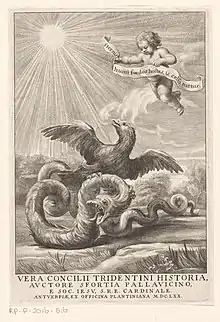 - Sforza Pallavicino, Pietro (1656). Istoria del Concilio di Trento, scritta dal P. Sforza Pallavicino, della Compagnia di Giesù ove insieme di rifiutasi con testimonianze auterevoli un Istoria falsa divolgata nello stesso argomento sotto il nome di Pietro Soave Polano 1. Roma: nella Stamperia d'Angelo Bernabò dal Verme Erede del Manelfi.
