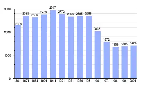 Gráfica de evolución demográfica de Pieve San Giacomo entre 1861 y 2001 |