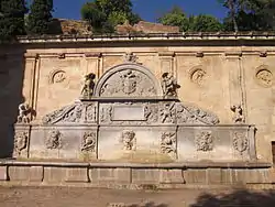 Fue diseñado por Pedro Machuca y realizado por Niccolo da Corte en 1545 por encargo probablemente de Íñigo López de Mendoza, conde de Tendilla y por entonces alcalde de la Alhambra.[2] Muestra una cartela con la siguiente inscripción: